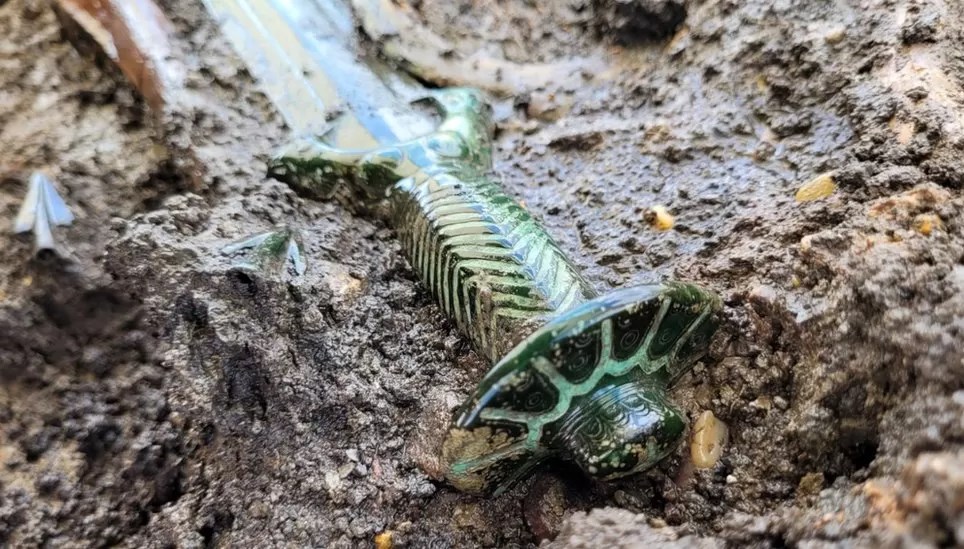 Arkeologlar, kılıcı bir erkek, bir bayan ve bir gencin arka arda defnedildiği ve birçok meyyit armağanının bulunduğu mezardan çıkardı. Tıpkı mezara gömülen 3 kişinin akrabalık bağının olup olmadığı bilinmiyor.