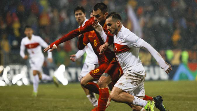 Karadağ-Türkiye maçının oynandığı Niksic Şehir Stadı’nın kötü zemini futbolcuları oldukça zorladı.