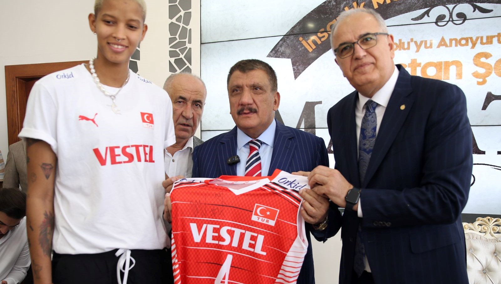 Yazıcı, Vargas ve Üstündağ’a kayısı ve Arslantepe Höyüğü’nde çıkarılan yapıtların replikalarından yapılan plaket takdim ederken, Üstündağ ise Yazıcı’ya Türkiye Voleybol Federasyonu plaketi ile Vargas’ın imzalı formasını sundu.