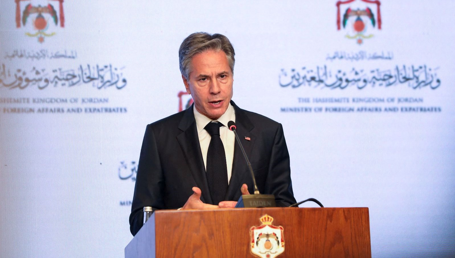 Blinken, Ürdün’ün başşehri Amman’da Ürdün, Mısır, Suudi Arabistan, Katar ve Birleşik Arap Emirlikleri (BAE) dışişleri bakanları ve Filistin Kurtuluş Örgütü (FKÖ) İcra Komitesi Genel Sekreteri ile yaptığı toplantıdan sonra Mısır Dışişleri Bakanı Samih Şukri ve Ürdün Dışişleri Bakanı Ayman Safadi ile ortak basın toplantısı düzenledi.