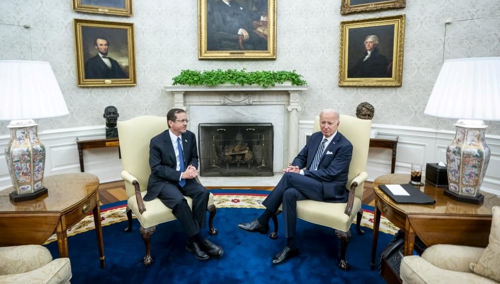 ABD Lideri Joe Biden, İsrail Cumhurbaşkanı Isaac Herzog ile ABD’nin başşehri Washington DC’de bulunan Beyaz Saray’da bir ortaya geldi. İkili görüşme öncesi açıklama yapan Biden, “İsrail’e olan sevgimin esaslı ve uzun müddetli olduğunu biliyorsunuz ve sık sık söylediğim üzere, İsrail olmasaydı, bir tane icat etmek zorunda kalırdık” dedi.
