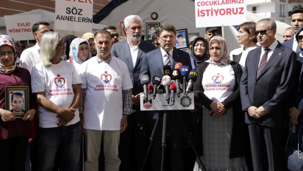 Diyarbakır’da çocukları dağa kaçırılan ailelerin HDP vilayet binası önündeki aksiyonu sürüyor. Adalet Bakanı Yılmaz Tunç, aileleri ziyaret etti.