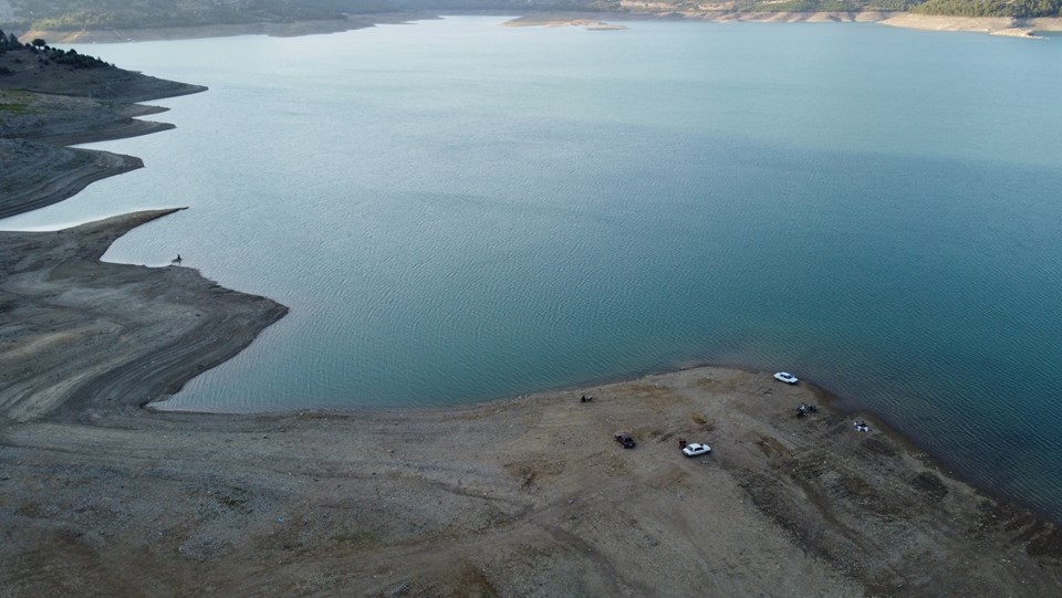 Kozan Barajı etrafında oluşan adacıklar havadan drone ile görüntülenirken, sıcak havadan bunalan vatandaşlar baraj kenarında oluşan adacıklarda aileleri ile birlikte serinledi.
