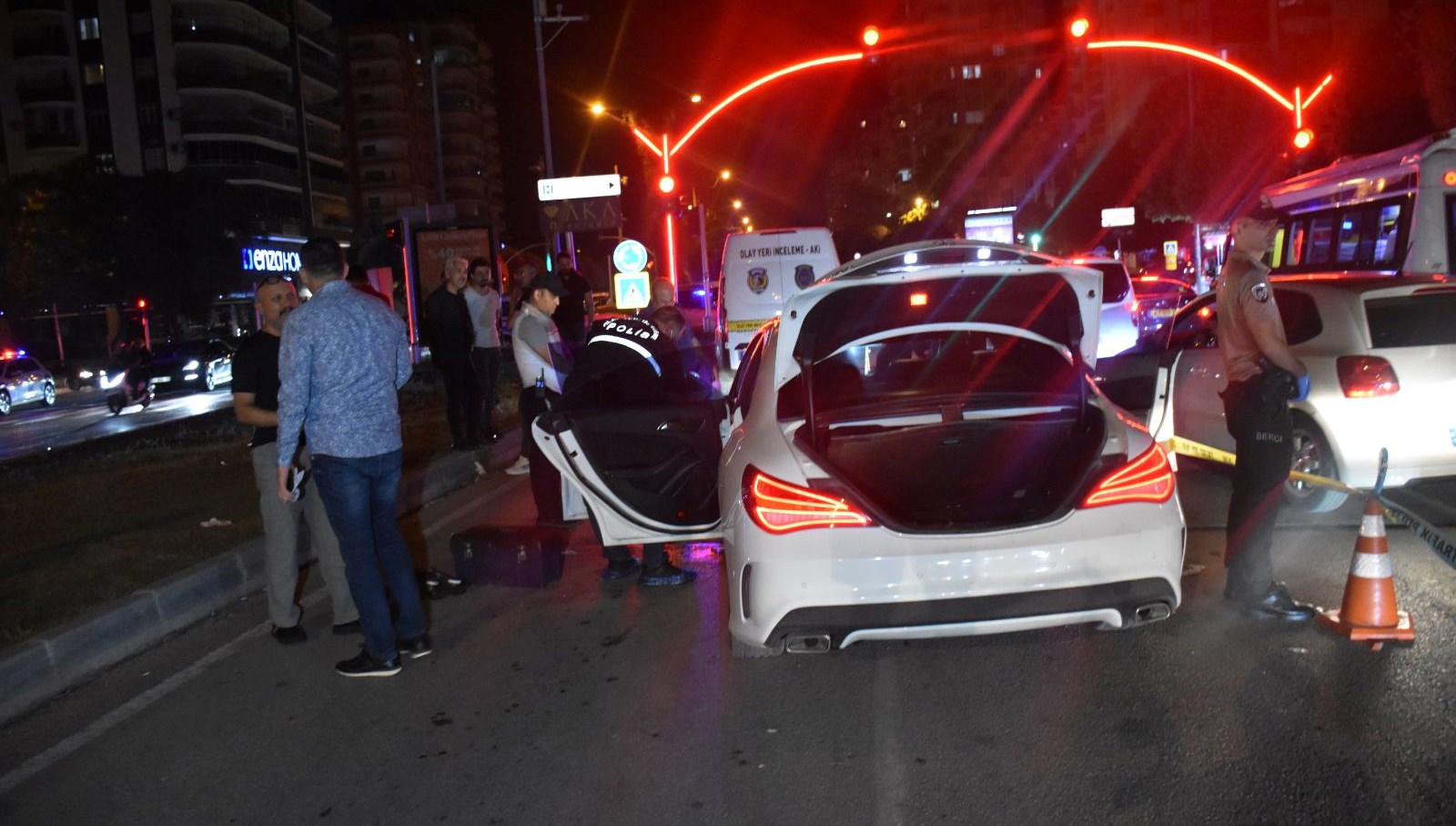 Olay yerindeki incelemenin akabinde araba, emniyetin otoparkına çekildi.