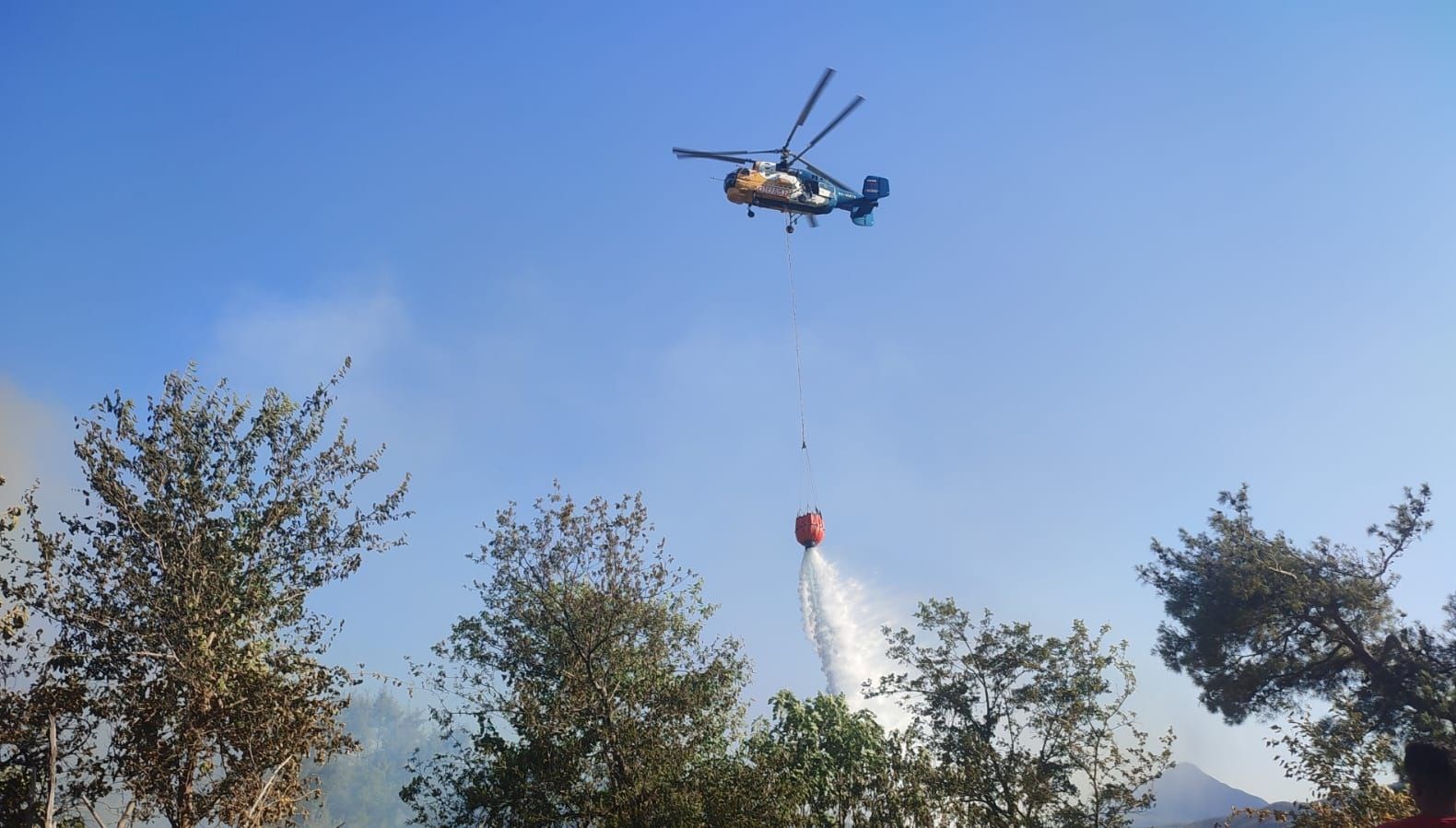 Ekiplerin yangına havadan ve karadan müdahalesi sürüyor.