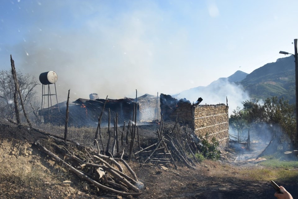 Yangında bir meskenin de ziyan gördüğü öğrenildi.