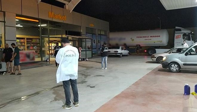Polis grupları akaryakıt istasyonunda inceleme yaptı. Olayla ilgili başlatılan soruşturma sürüyor.