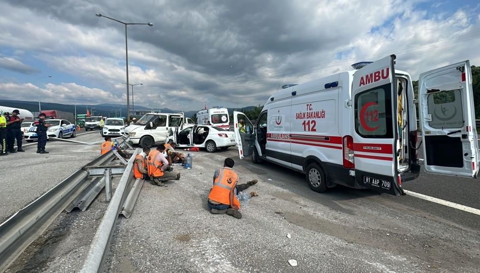 Kazada, şoförlerin yanı sıra arabadaki 3 kişi ile 10 emekçi yaralandı.