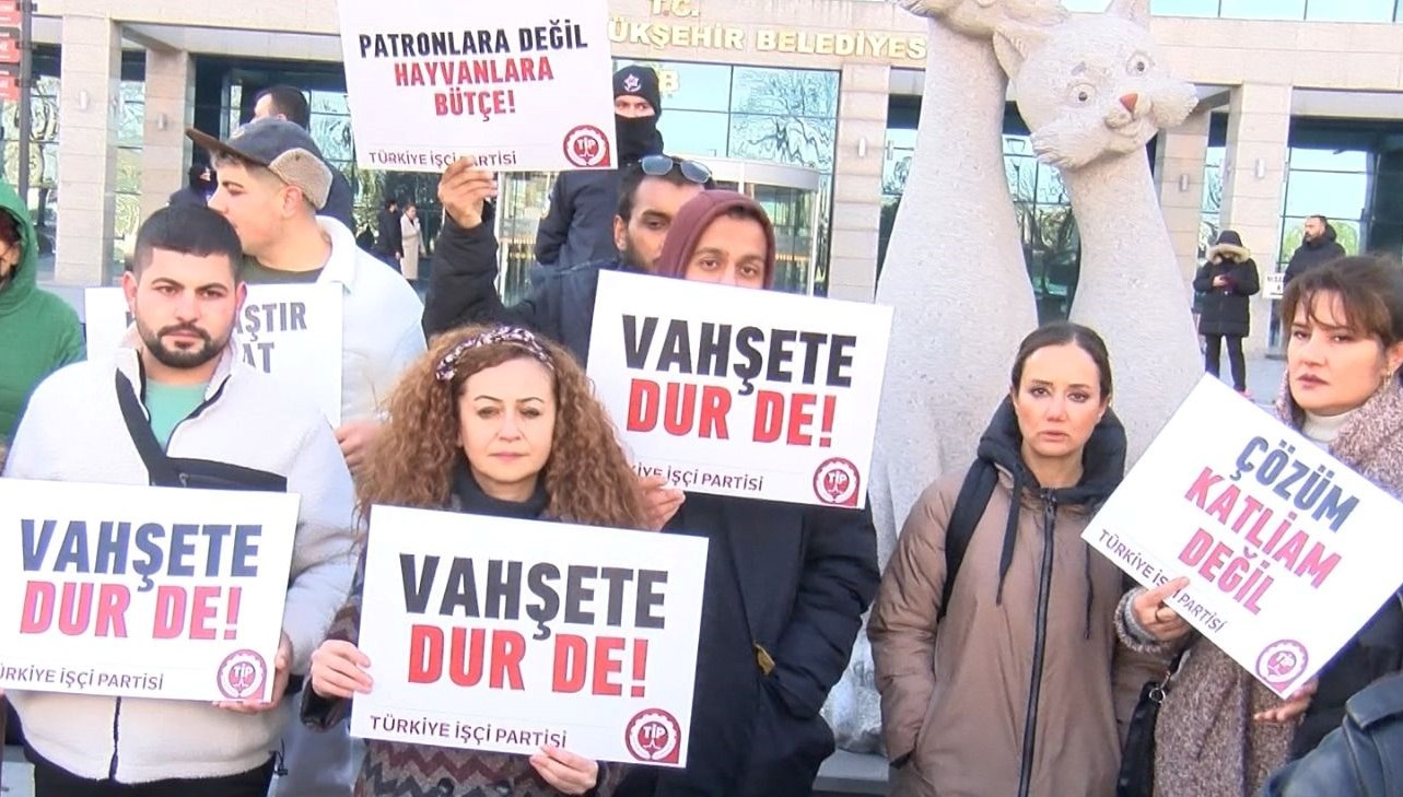 Küpeli köpeklerin toplandığını argüman eden bir küme hayvansever, Ankara Büyükşehir Belediyesi önünde bir ortaya gelerek reaksiyon gösterdi.