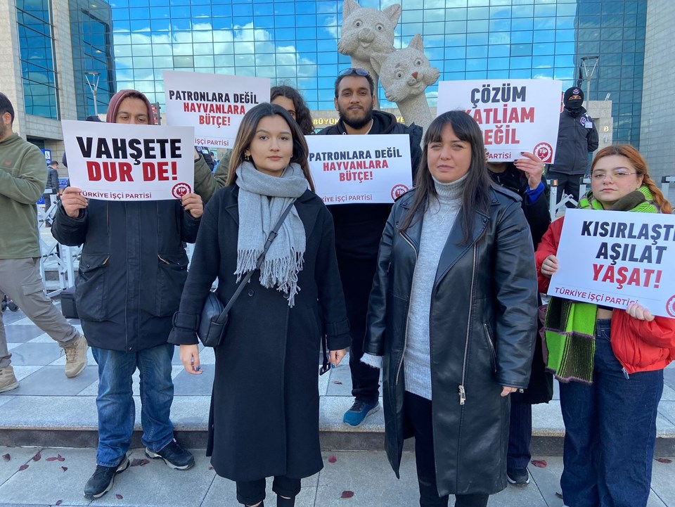 Ellerinde çeşitli dövizler taşıyan yaklaşık 50 kişi, “Hayvana, beşere, yeryüzüne özgürlük”, “Kısırlaştır, yaşat” sloganları attı.