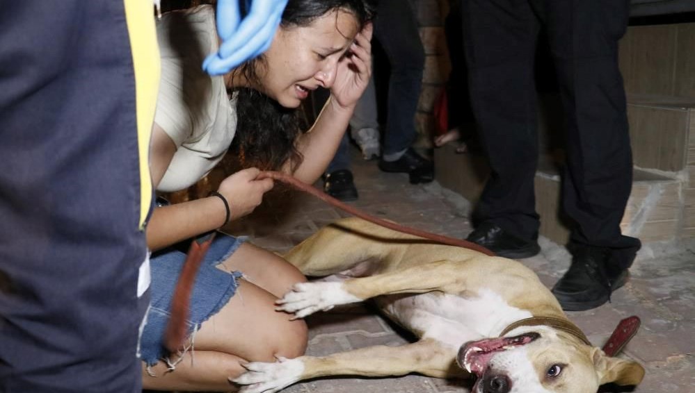 Yangın köpeğiyle bir mahsur kalan bir bayan, pencereye çıkarak konut taşıma asansörü ile aşağı indirildi. Köpeğinin baygınlık geçirmesi üzerine bayan, köpeğine sarılarak gözyaşlarına boğuldu. Etraftaki vatandaşlar yardımıyla köpeğe su verilerek tekrardan ayıltıldı.