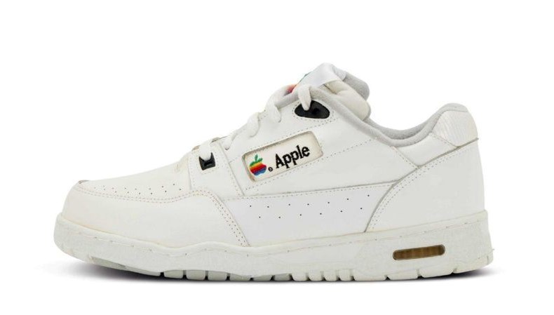 Görülen en az eserlerden olduğu söylenen beyaz ayakkabıların üzerinde Apple’ın gökkuşağı renklerindeki eski logosu yer alıyor.