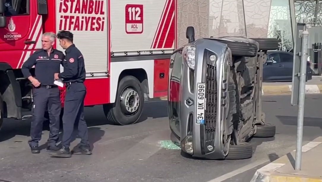İstanbul Beşiktaş’ta seyir halindeyken diğer bir araç şoförü ile yol verme tartışmasına giren kişinin kullandığı araç refüje çarparak devrildi.