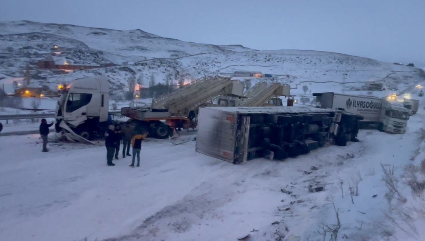 Ardahan-Kars kara yolu Taşlıdere köyü mevkisinde buzlanma nedeniyle tırlar kaydı, yol ulaşıma kapandı.