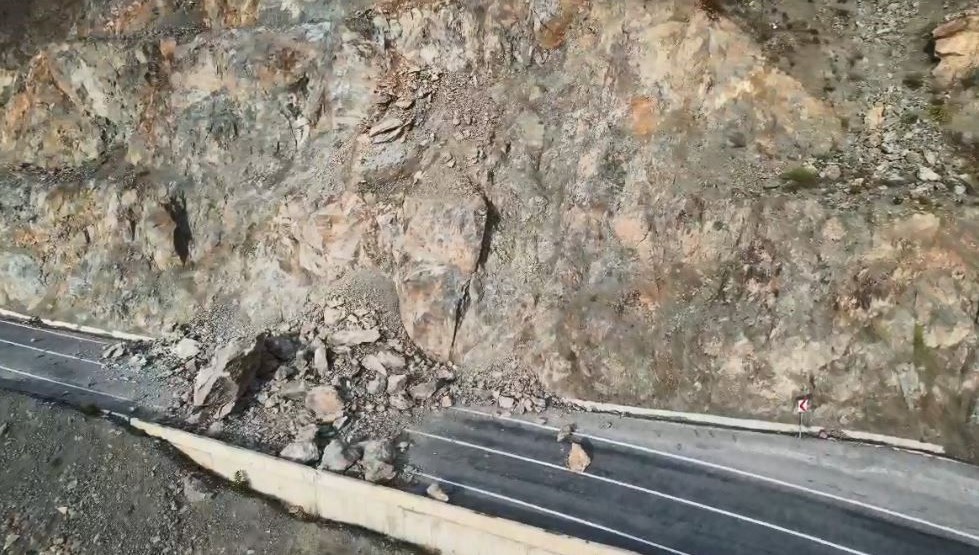 Artvin – Ardahan karayolunun 25’nci kilometresi Varyant mevkiinde sabah erken saatlerde yamaçtan kopan dev kaya kesimleri karayolunu büsbütün ulaşıma kapattı.