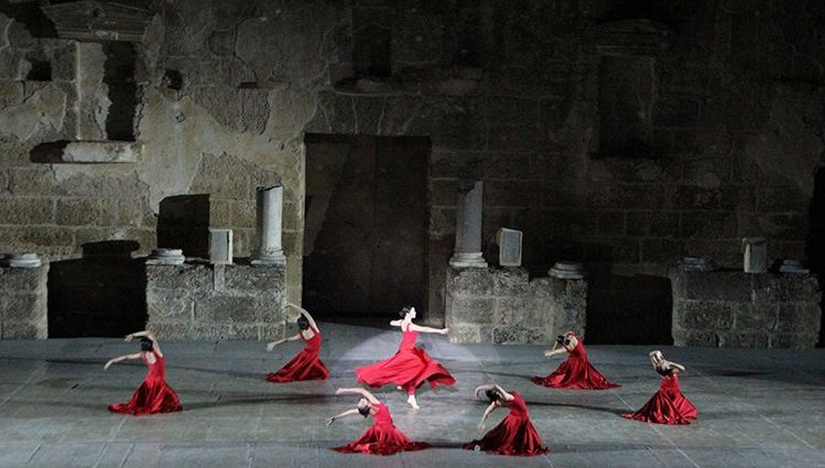 Antik tiyatronun tarihi atmosferindeki şovda, 100 öğretmen ve 70 öğrenci sahne aldı.