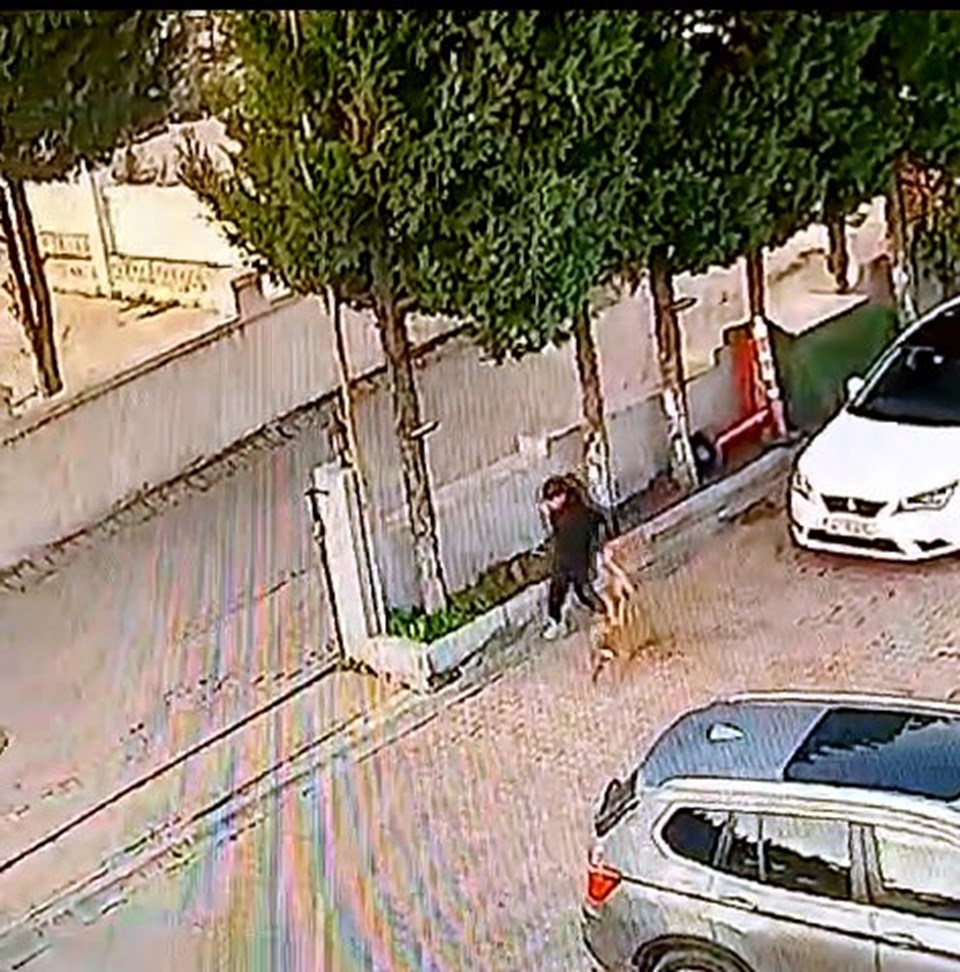 Güvenlik kamerasına yansıyan imajlarda, sokakta yürüyen biri kapüşonlu iki kişi, köpeğin bağlı bulunduğu kulübeye yaklaşıyor, bir müddet etrafta dolaşanlardan biri kulübede bağlı olan köpeğin ipini çözerek koşmaya başlıyor.