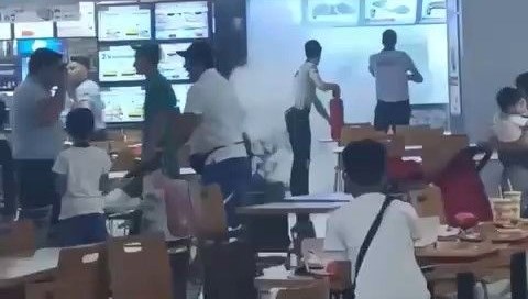 Yemek katında çıkan yangın kısa müddette büyüyerek vatandaşların yemeklerini bırakıp kaçmasına neden oldu.