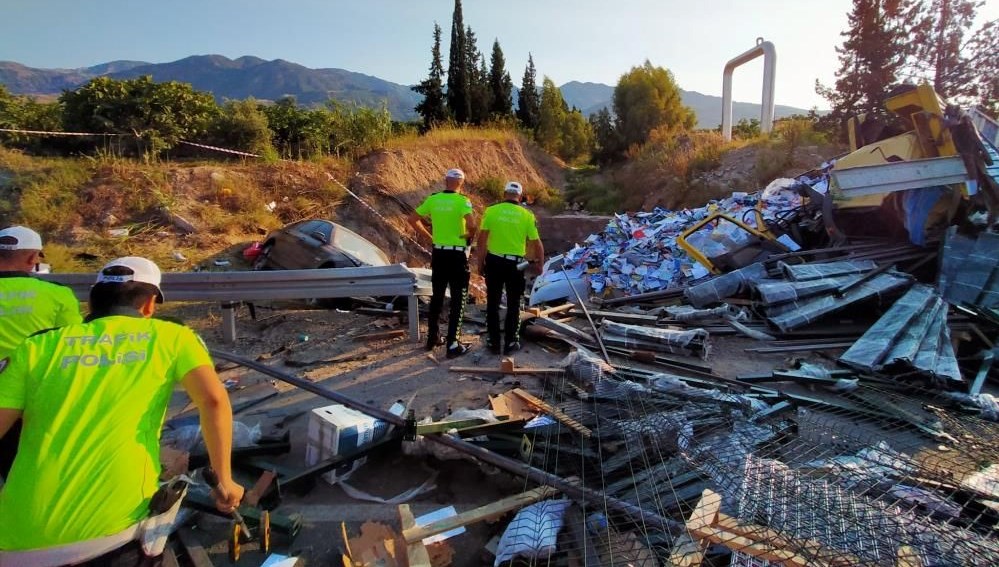 Kaza yapan arabası gören bir şoförün ise yardım etmek için sağa çektiği kamyona da geriden gelen diğer bir kamyon çarptı.