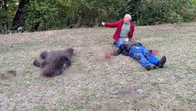 Saldırıya uğrayan yaşlı adamın feryadını duyan komşuları, bağrışmalarına karşın yaşlı adamı bırakmayan ayıyı vurdu.