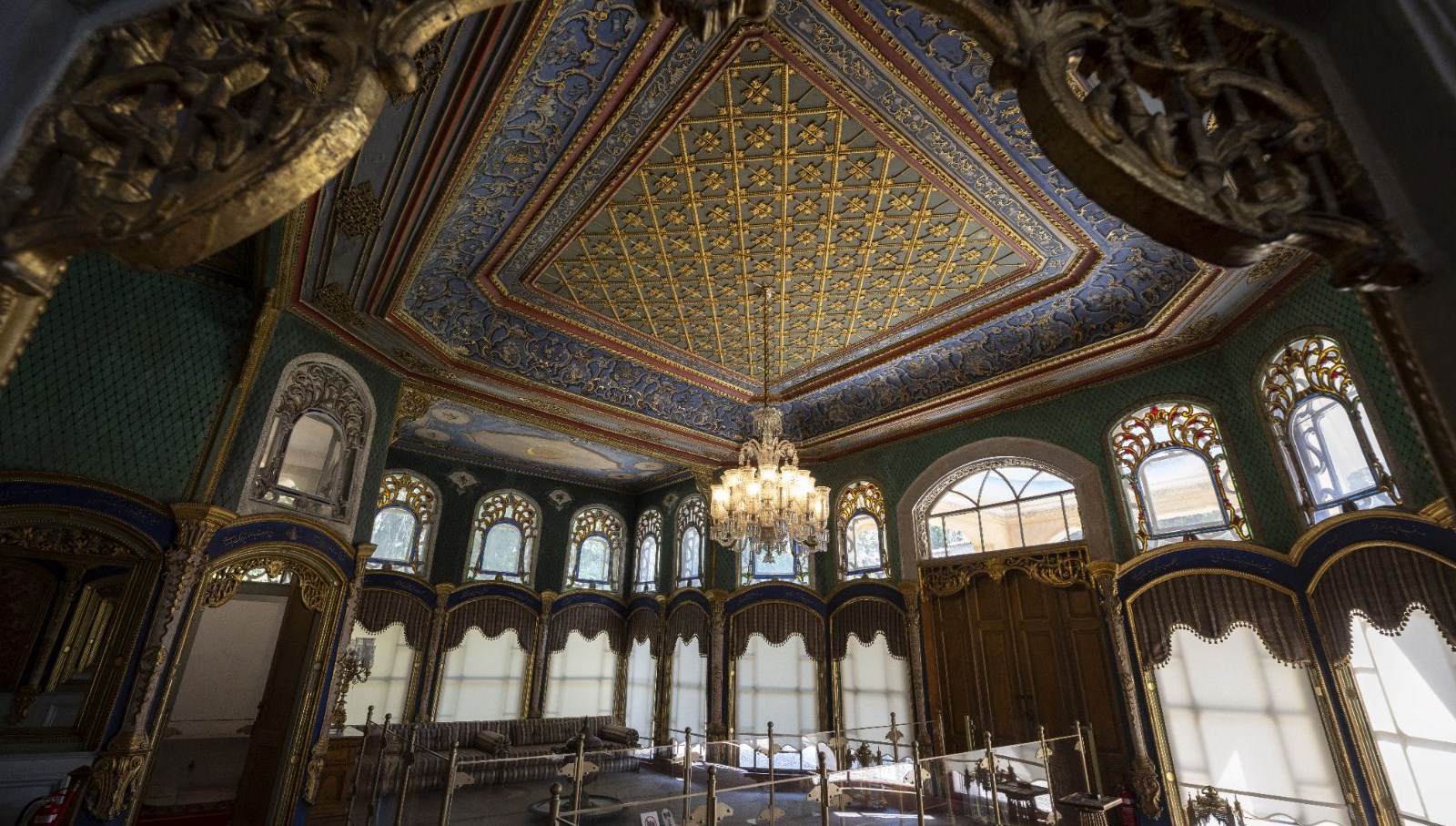 Dronun kasrın giriş kapısından başlayarak kaydettiği manzaralarda, Divanhane, Arz Odası, ünlü kurum ve kuruluşları tarafından armağan edilen müzik aletlerinden oluşan “Türk çalgıları sergisi” yer aldı.