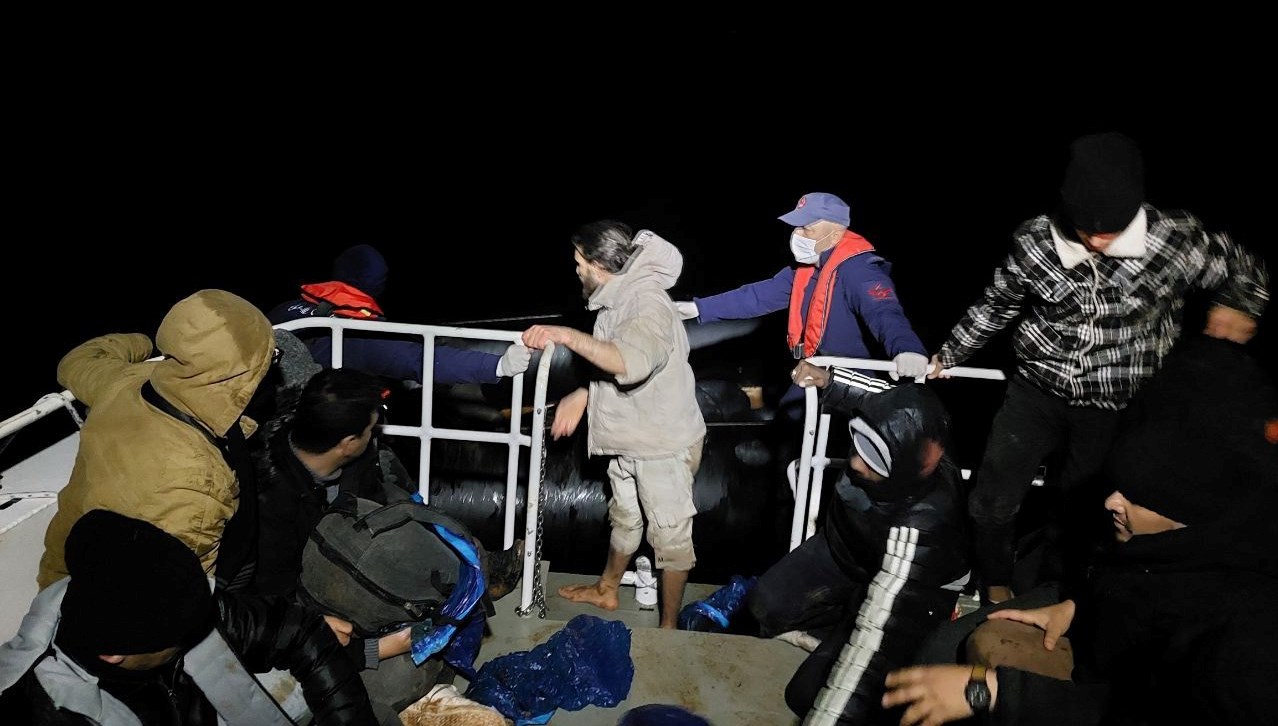 Sahil Güvenlik botu “KB-4510” ile bölgeye ulaşan gruplar, Yunanistan unsurlarınca geri itilen, ortalarında bayan ve çocukların da bulunduğu 20 göçmeni kurtardı.