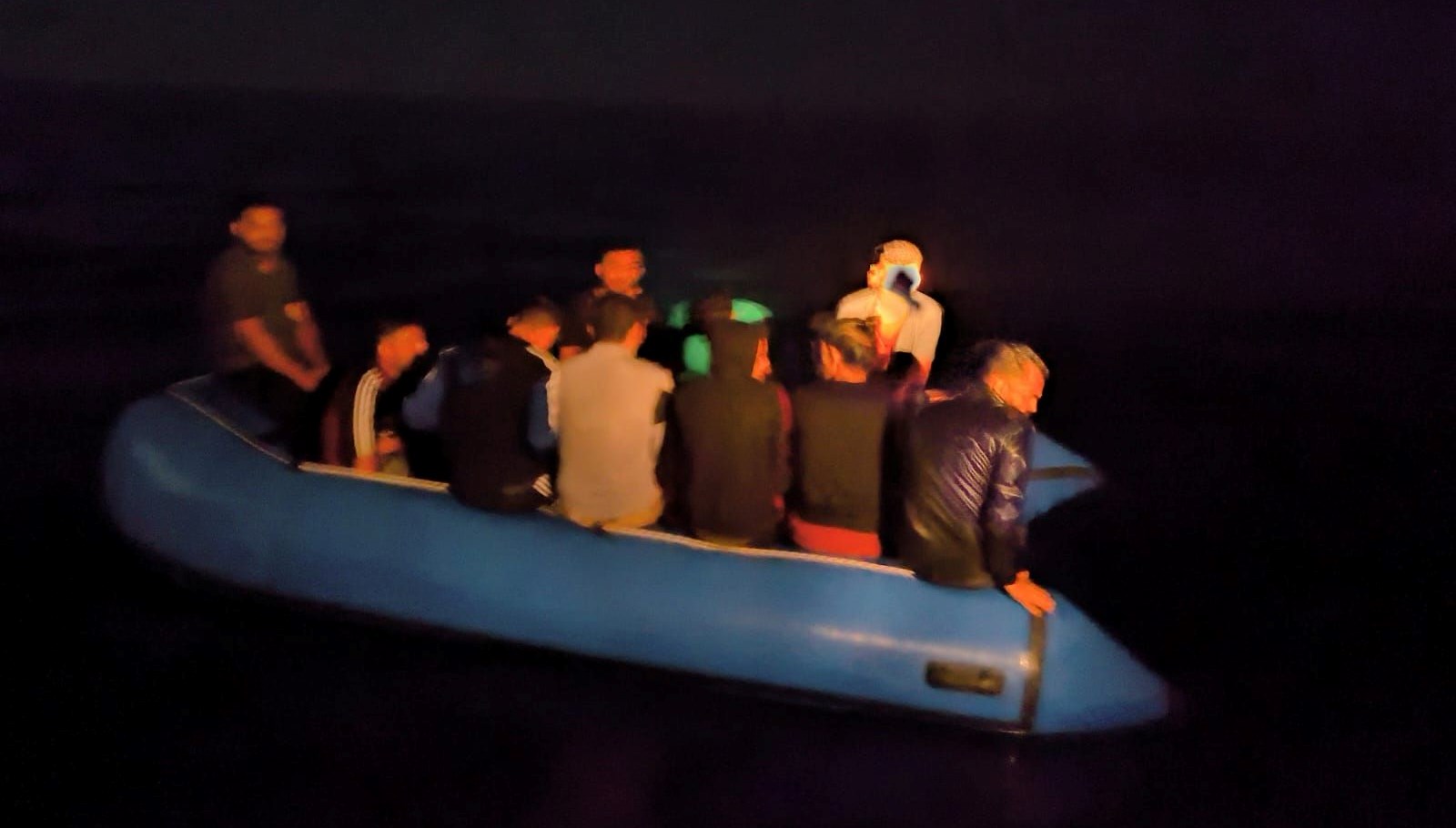 Sahil güvenlik gruplarınca Ayvalık ilçesi açıklarında sistemsiz göçmenleri taşıyan lastik bot tespit edildi.