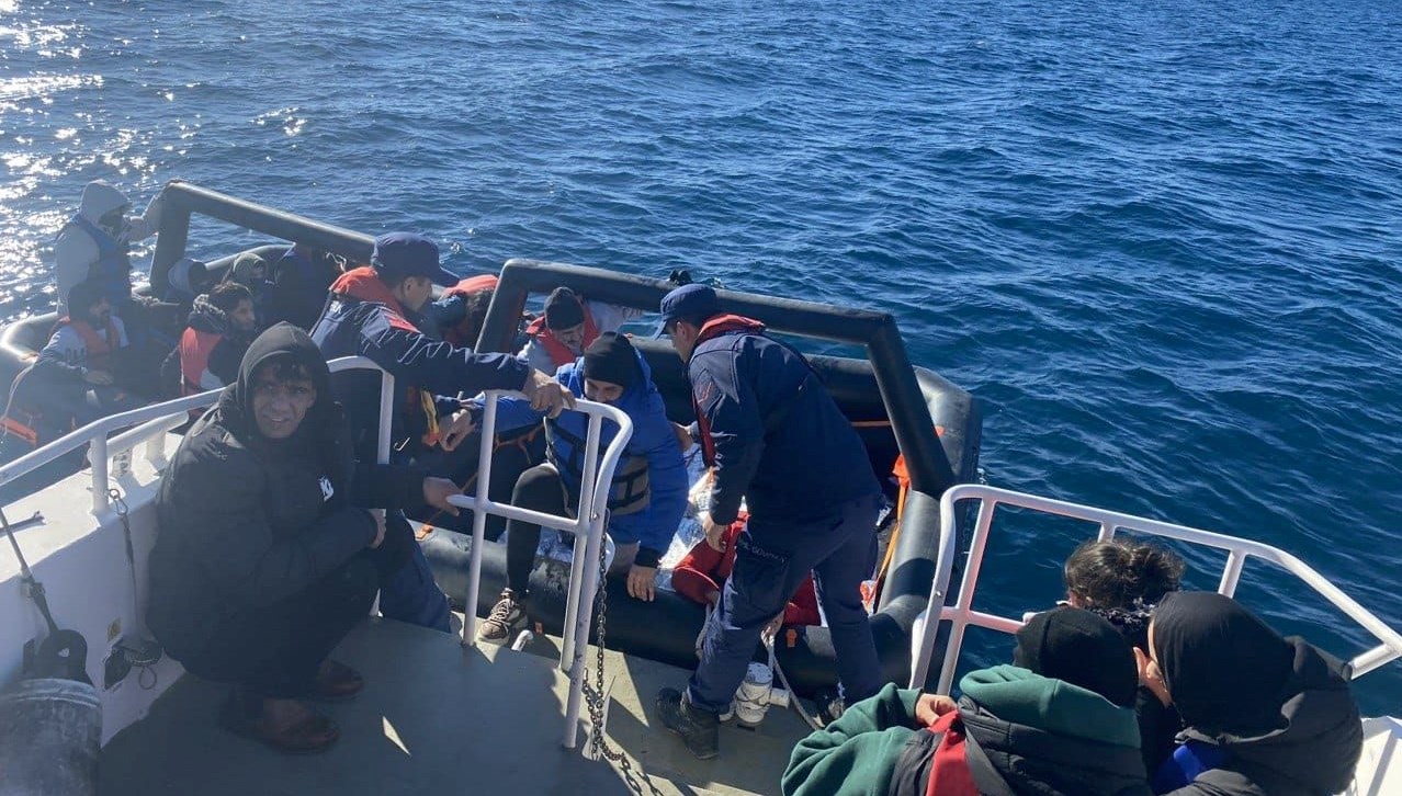 Sahil Güvenlik botu “KB-4510” ile bölgeye ulaşan takımlar, Yunanistan unsurlarınca geri itilen, ortalarında bayan ve çocukların da bulunduğu 33 göçmeni kurtardı.