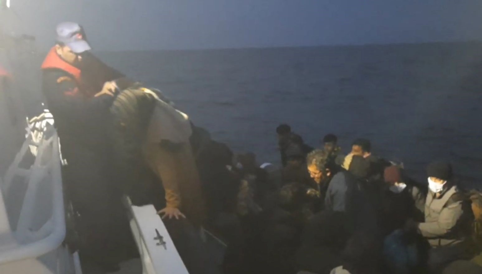 Bunun üzerine Kıyı Güvenlik botu “KB-4510” ile bölgeye yönlendirilen takımlar, bottaki 38 sistemsiz göçmeni kurtardı.