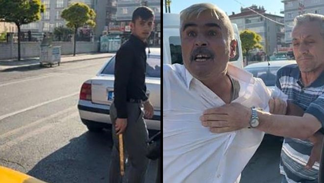 200 metre sonra aracın önünü keserek durduran araç şoförü, arabasından aldığı döner bıçağıyla oğlu ile birlikte öteki şoförün üzerine yürüdü.