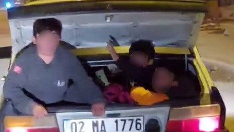 Yaşları 12 ile 15 ortasında değişen 3 çocuk, hareket halindeki bir arabanın bagajında görüntülendi.