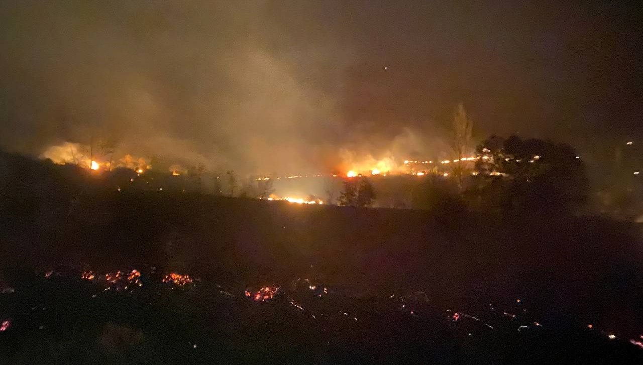 Kuvvetli rüzgarın tesirli olduğu bölgede takımların yangına müdahalesi sürüyor.