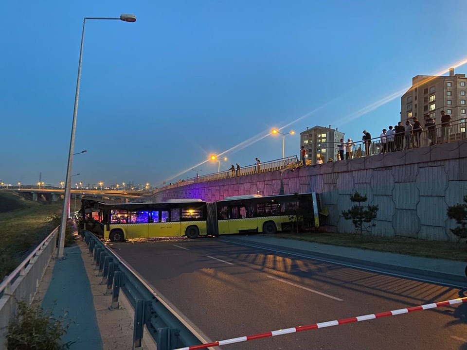 Başakşehir’de karşı şeride geçip bariyerlere çarparak irtibat yoluna düşen İETT otobüsünün şoförü yaralandı.
