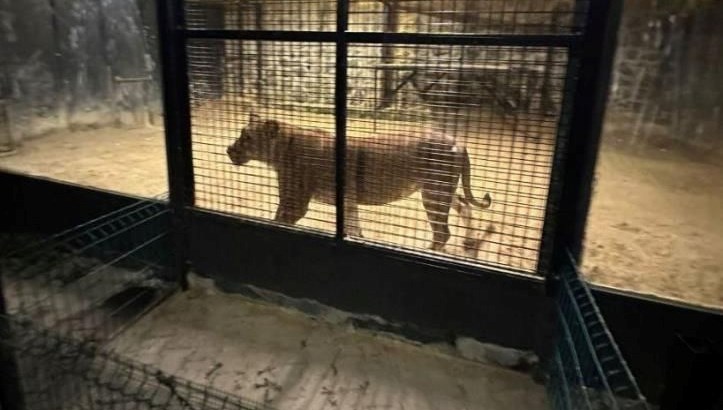 Ekipler ormanda bir aslanın gezdiğini fark etti. Aslan ilaçlı ok ile yakalandı.
