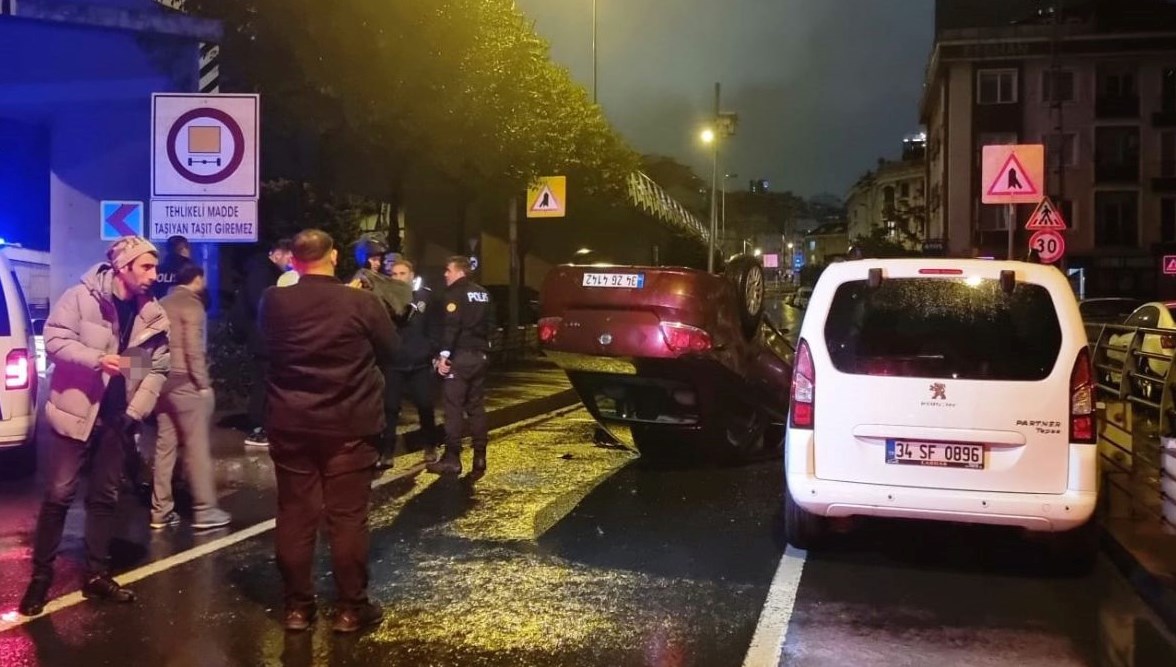 Kaçmaya devam eden araba Şişli, Paşa Mahallesi, Akar Caddesi’nde park halindeki arabalara çarparak takla attı.