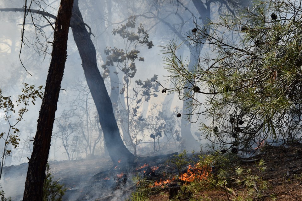 Bölgede yangının tesirli olduğu alanda soğutma çalışmalarına başlandı.