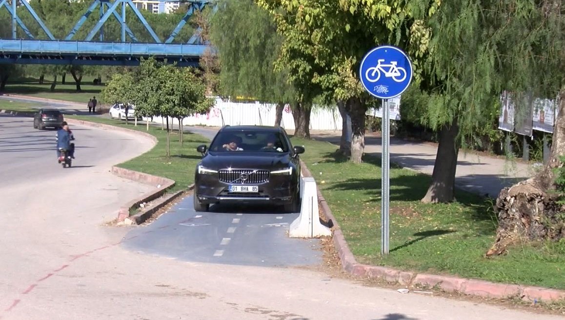 Kestirme yol olması nedeniyle Seyhan Irmağı kıyısı ile Zabıta Daire Başkanlığı önündeki yolu kullanan araçlar, 100’üncü Yıl Bulvarı’na dönmek için 3 kilometre ileride bulunan kavşağı kullanmak yerine bisiklet yolunu kullanmayı tercih ediyor.