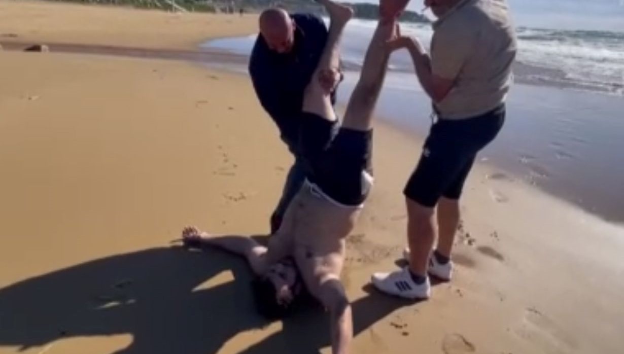 Bir epey bitkin olan genç kendini kumların üzerine bıraktı. Çok su yuttuğunu söyleyen Baykara’yı arkadaşları ayaklarından havaya kaldırıp suyu boşaltmaya çalıştı.