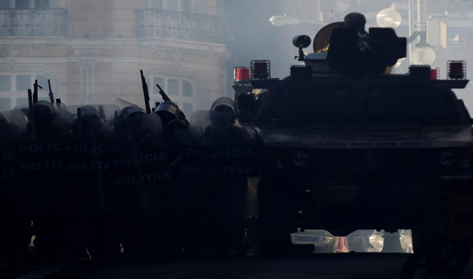 Sosyal medyaya yansıyan görüntülerde, başkent La Paz’daki hükümet sarayına askeri zırhlı aracın zorla girmeye çalıştığı görülüyor. Askerlerin müdahalesi sırasında göz yaşartıcı gaz ve tazyikli su kullanıldığı bildirildi.