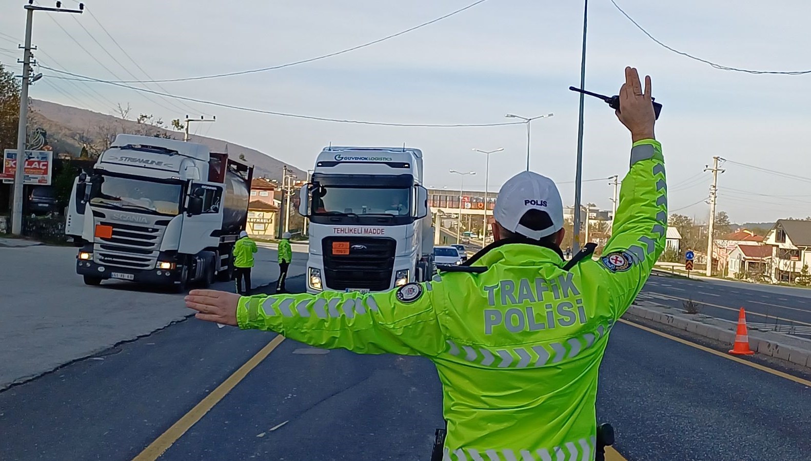 Tır, kamyon ve otobüsler üzerinde yapılan kontrollerde şoförlerin araçlarına kış lastiği takıp takmadığına bakılırken, takımlar şoförleri hem uyardı hem de broşür vererek kış lastiği hakkında bilgilendirdi.