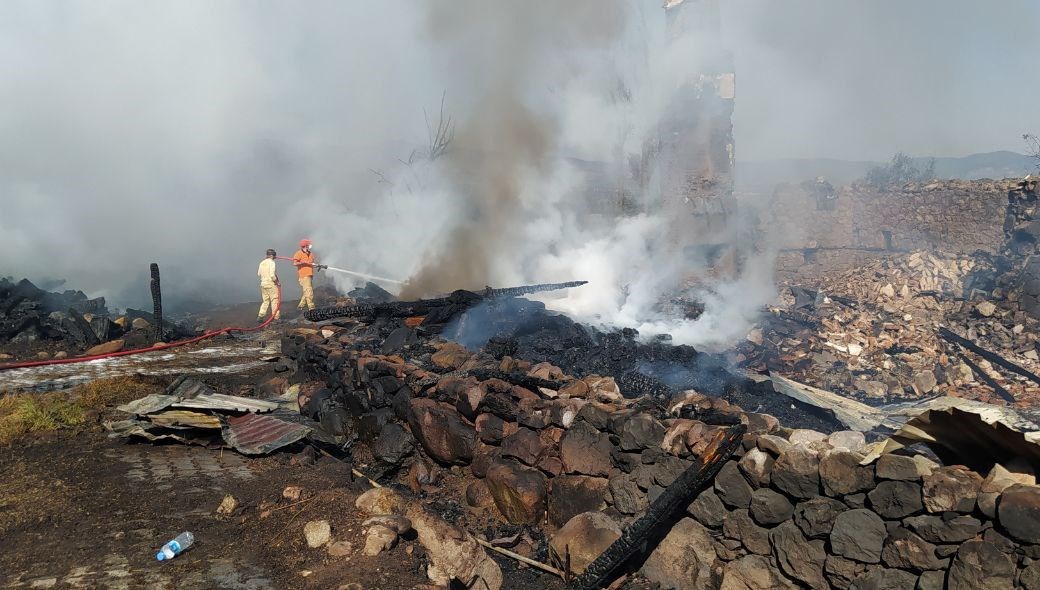 Yangında kullanılmayan 2 ahşap konut ile 3 samanlık, odunluk ve ardiye yanarak kullanılamaz hale geldi.
