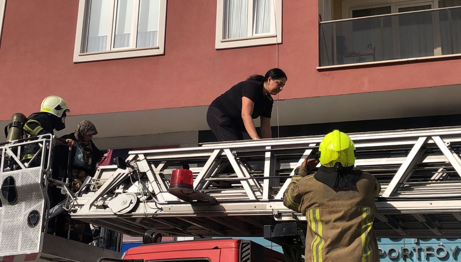 Alevlere müdahale eden itfaiye grupları, mahsur kalanları araç merdivenleriyle tahliye ediyor.