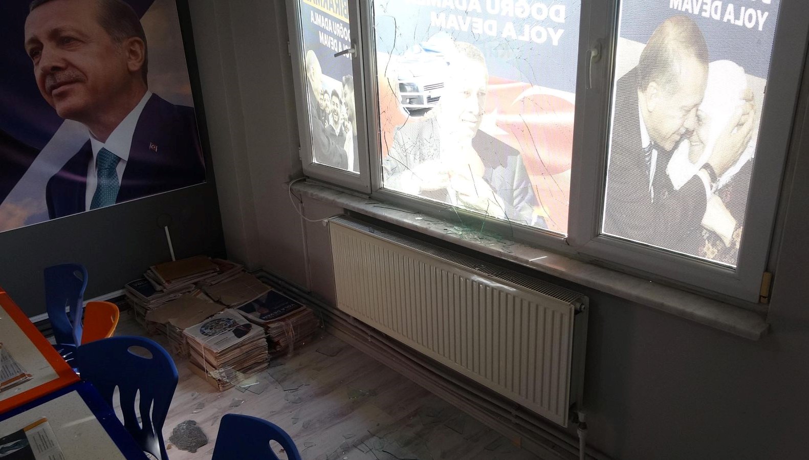 Çanakkale’de Atatürk Caddesi’nde 18 Mart Stadyumu’nun karşısındaki AK Parti Cevatpaşa ve İsmetpaşa mahallelerinin ortak seçim ofisinin camları parke taşı atılması sonucu kırıldı.