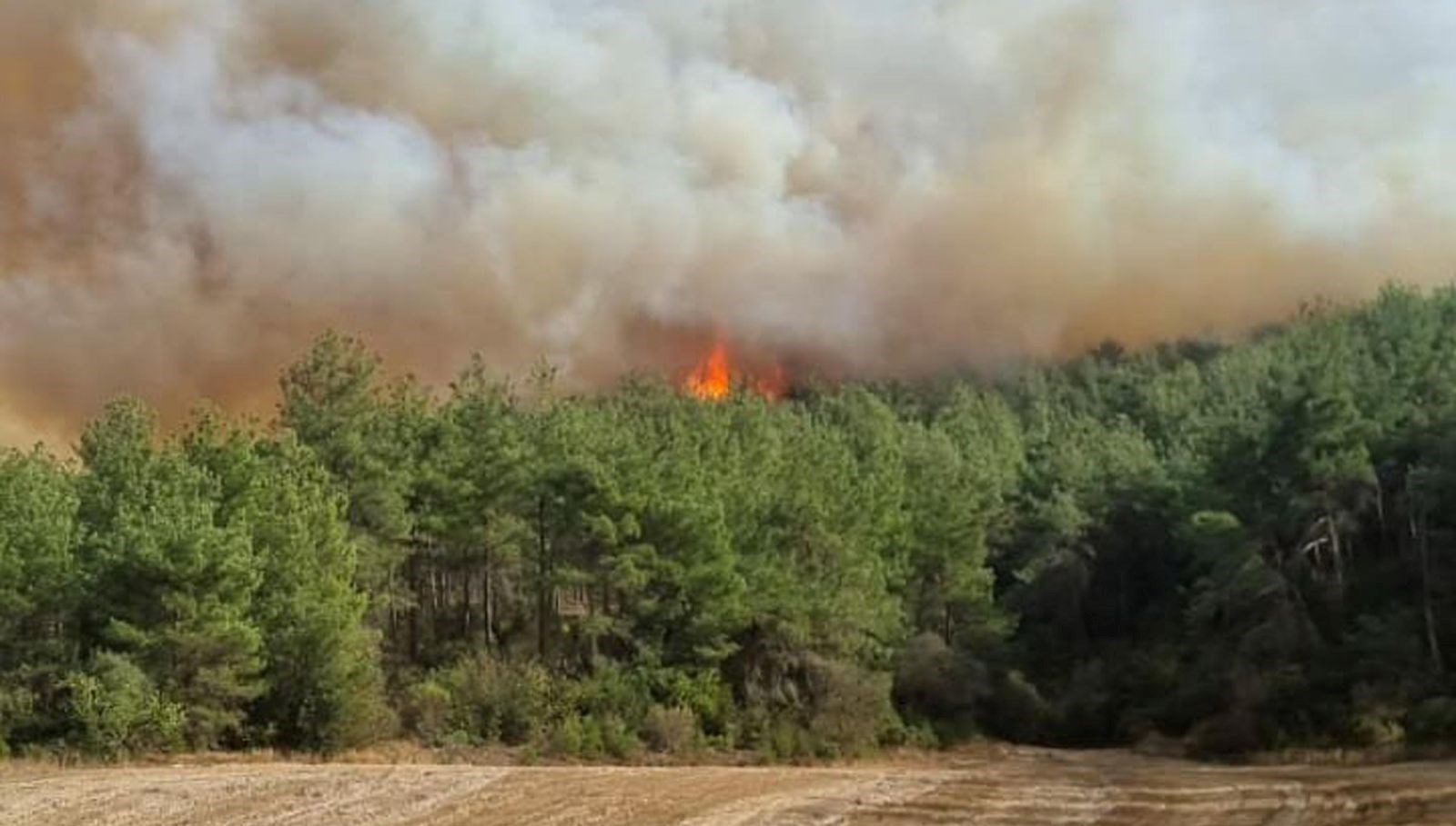 Ekipler, kuvvetli rüzgarın da tesiriyle büyüyen yangına havadan ve karadan müdahale ediyor.
