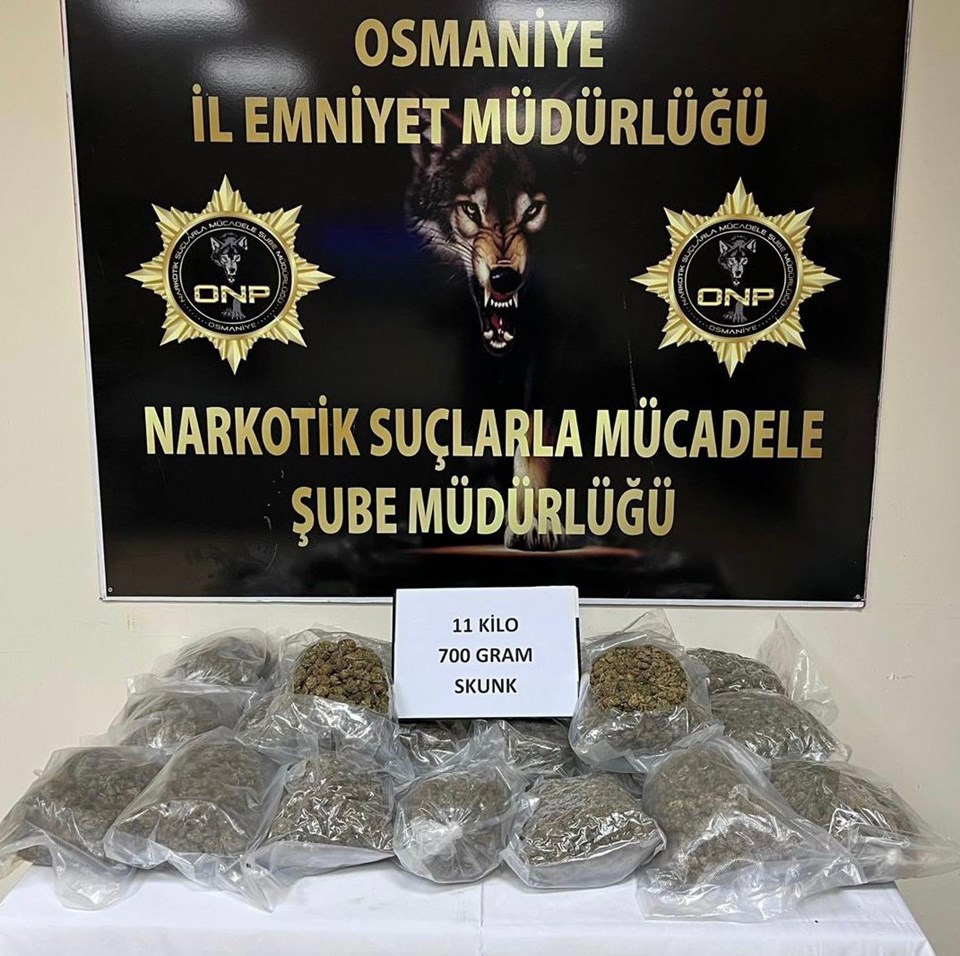 Ekipler, aramada tavukların bulunduğu kasaların içinde 11 kilo 700 gram skunk ele geçirdi.