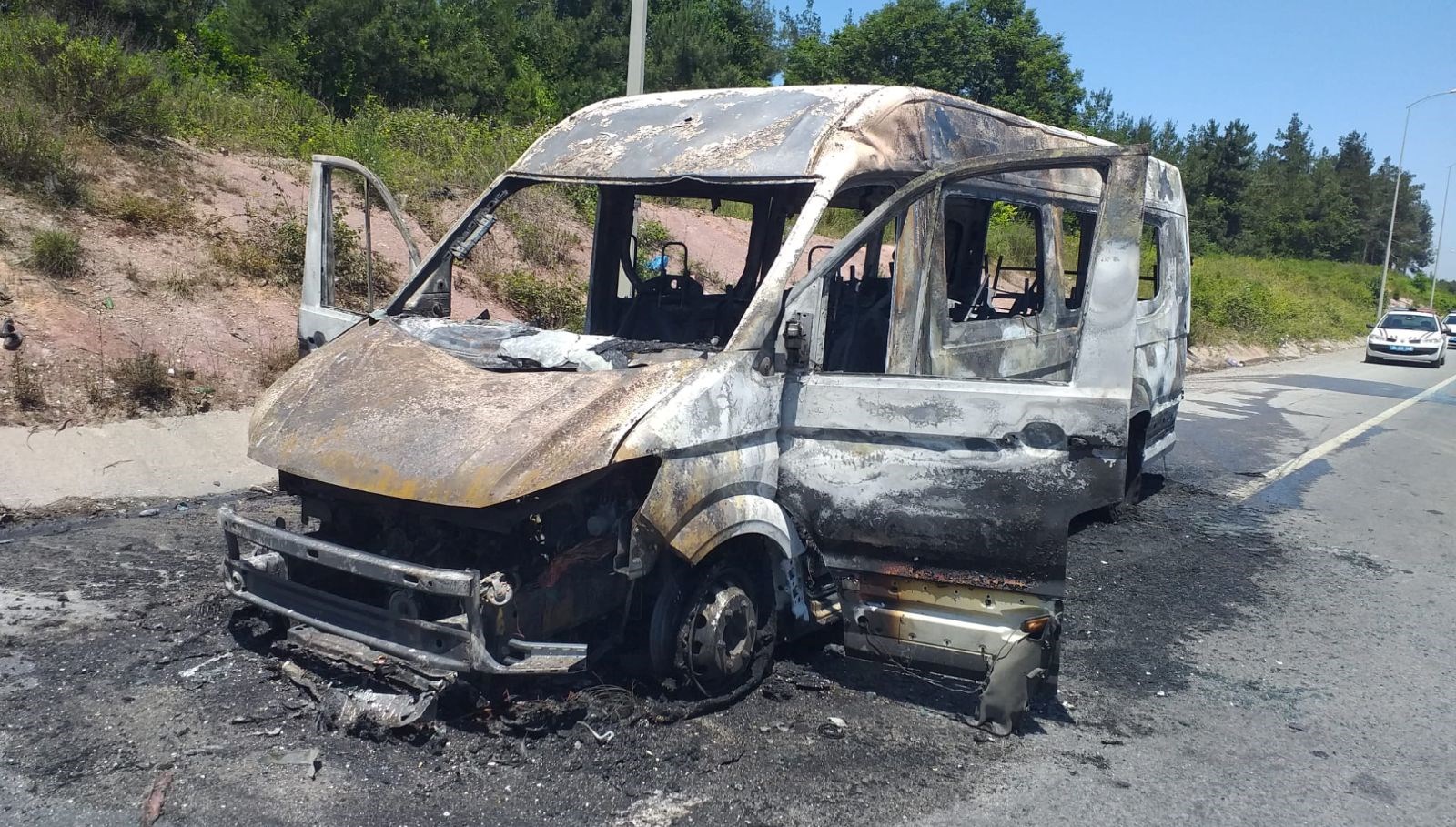 Gelen itfaiye görevlilerince söndürülen yangında minibüs kullanılamaz hale geldi.