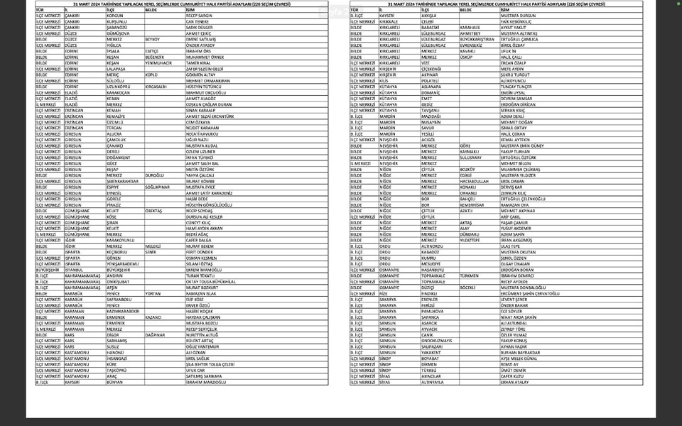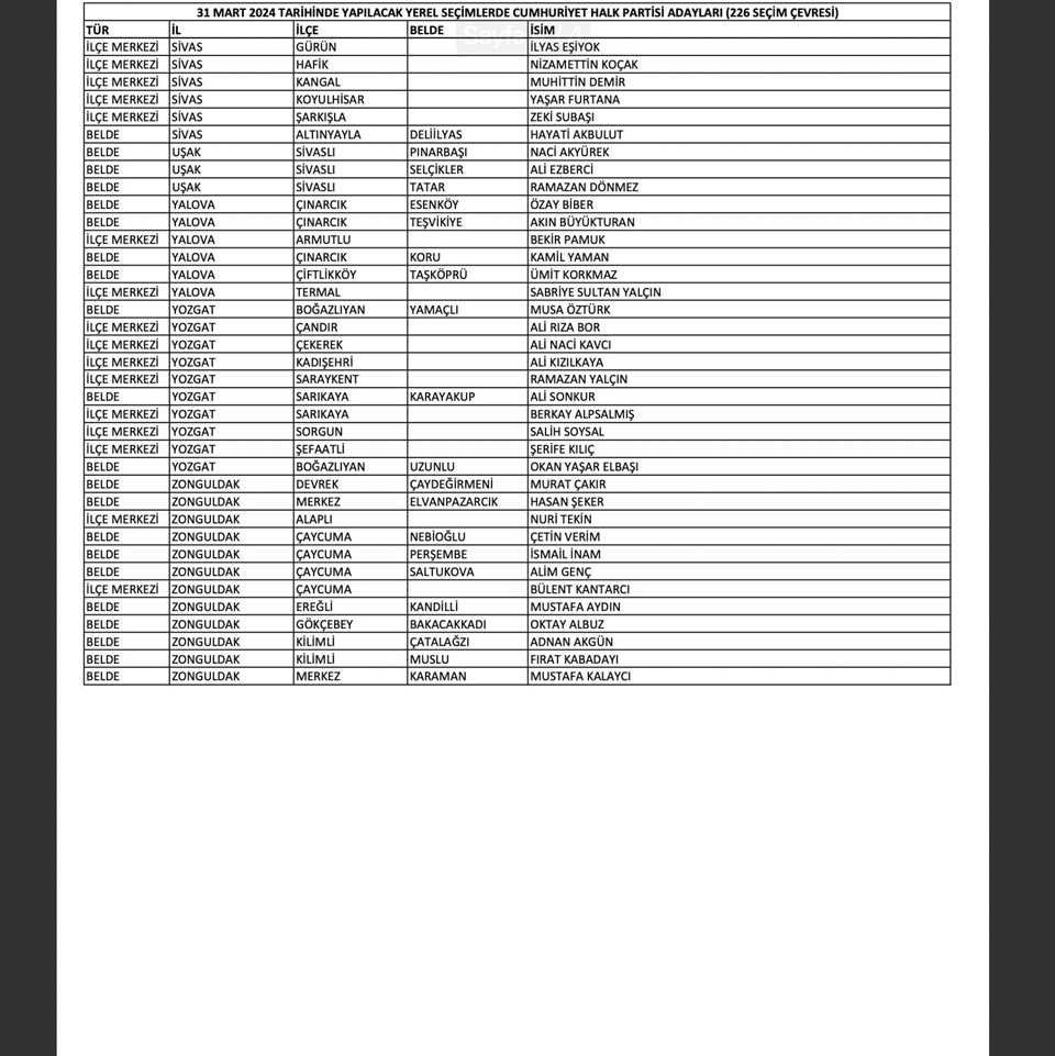 İŞTE CHP’NİN VİLAYET VE İLÇE BELEDİYE LİDER ADAYLARI