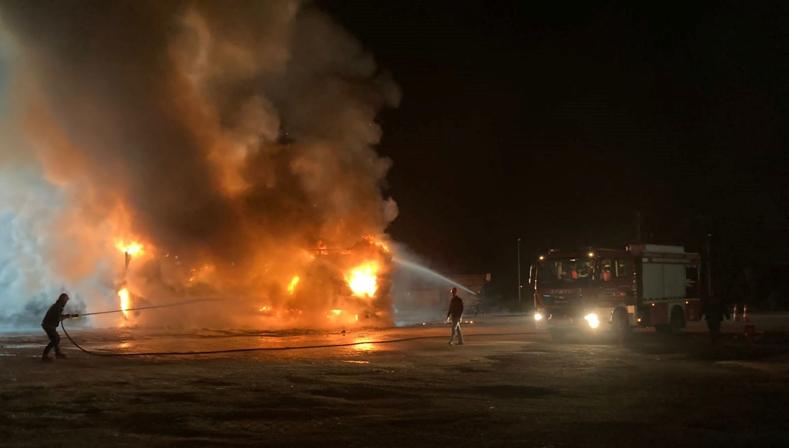 Yangına müdahale etmeye çalıştıklarını aktaran Sebahattin Karagöz, “Yangını görünce koştuk söndürmeye uğraştık ancak olmayınca aracı yıkama kısmına çektik. Biz suyu attıkça güzelce alevlendi. İtfaiye grupları gelip söndürdü. Dorseden çekiciyi ise öbür sürücü arkadaşlar ayırdı” dedi.