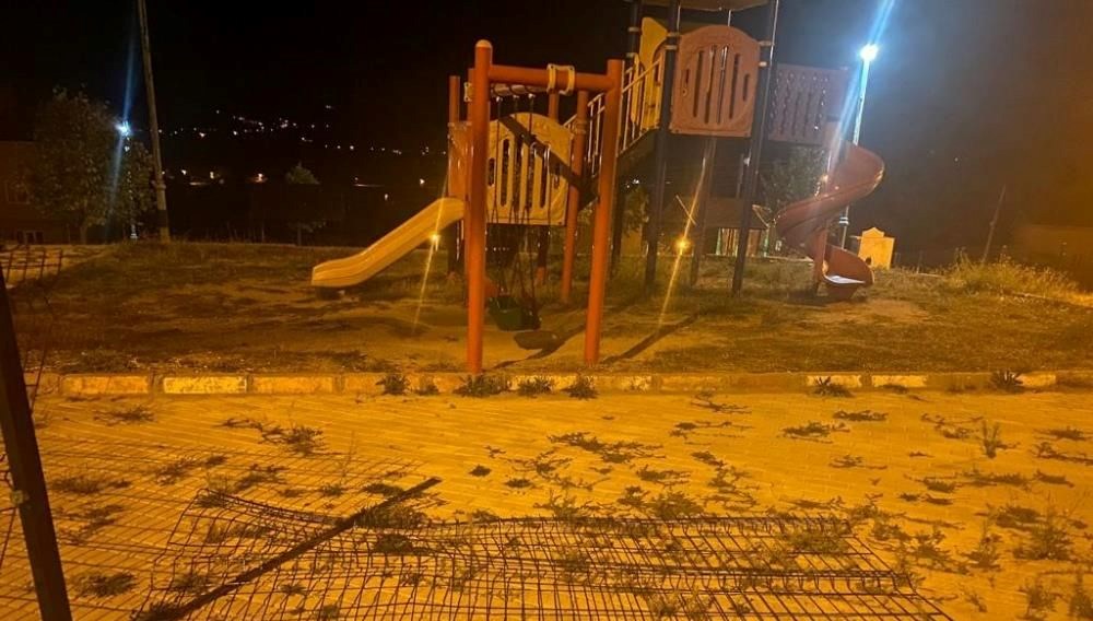Kütahya’da ormanlık alandan Domaniç ilçe merkezine inen ayı, çocuk parkının etrafındaki telleri aşarak içeri girdi.
