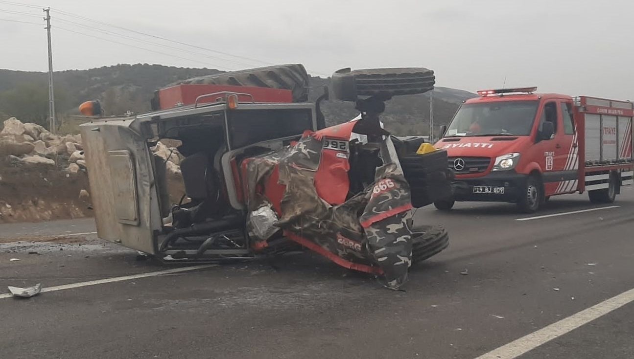 Çorum’da R.Ç’nin kullandığı TIR, Çorum-Mecitözü kara yolu Elvançelebi köyü yakınlarında, Arif Alagöz yönetimindeki traktörle çarpıştı.